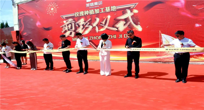 2019年6月3日上午10時(shí),美信集團(tuán)收購(gòu)位于神堂頭的2000畝玫瑰種植加工基地,并進(jìn)行了開工生產(chǎn)剪彩儀式。美信集團(tuán)董事長(zhǎng)牛俊通先生、青山綠水生態(tài)開發(fā)有限公司總經(jīng)理席青山先生、美信集團(tuán)培訓(xùn)部負(fù)責(zé)人徐艷軍和人事經(jīng)理曾紅等領(lǐng)導(dǎo)同牛牡丹、劉麗秀、劉計(jì)萍、閆明明、馮俊偉、王俊慧六位優(yōu)秀經(jīng)銷商共同為玫瑰種植加工基地剪彩,共同見證了美信集團(tuán)發(fā)展史上具有里程碑意義的重要時(shí)刻。